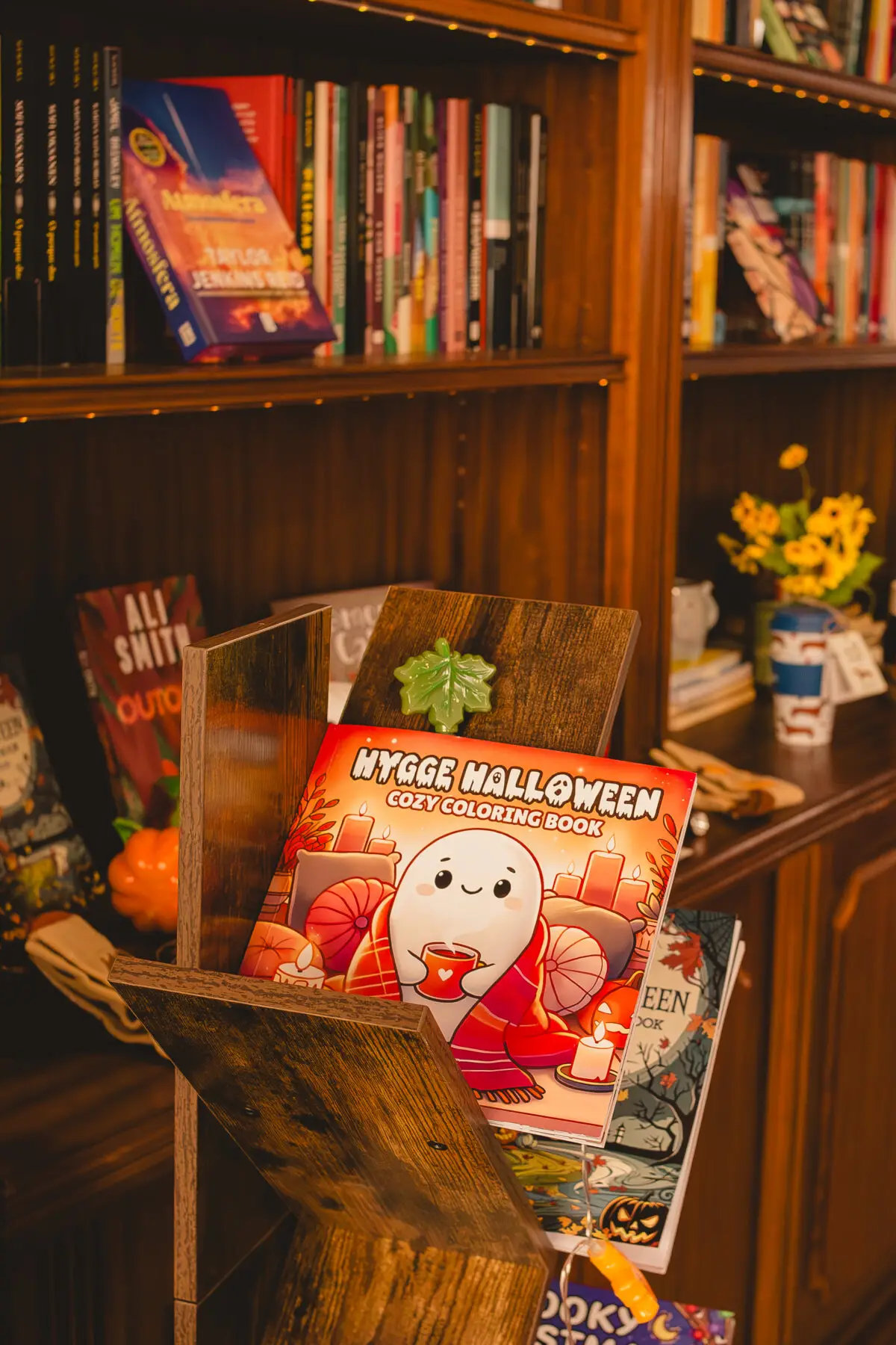 Assim, ainda a meio de setembro, decorei a livraria de abóboras, folhas, bolotas e livros alusivos ao outono. O iced coffee foi substituído pelo destaque ao Pumpkin Spice Macchiato (não Latte, pelo menos aqui) e volta e meia a minha Yankee Candle de ‘Golden Pumpkin’ aromatiza o ar à volta da minha secretária de trabalho aqui na livraria.