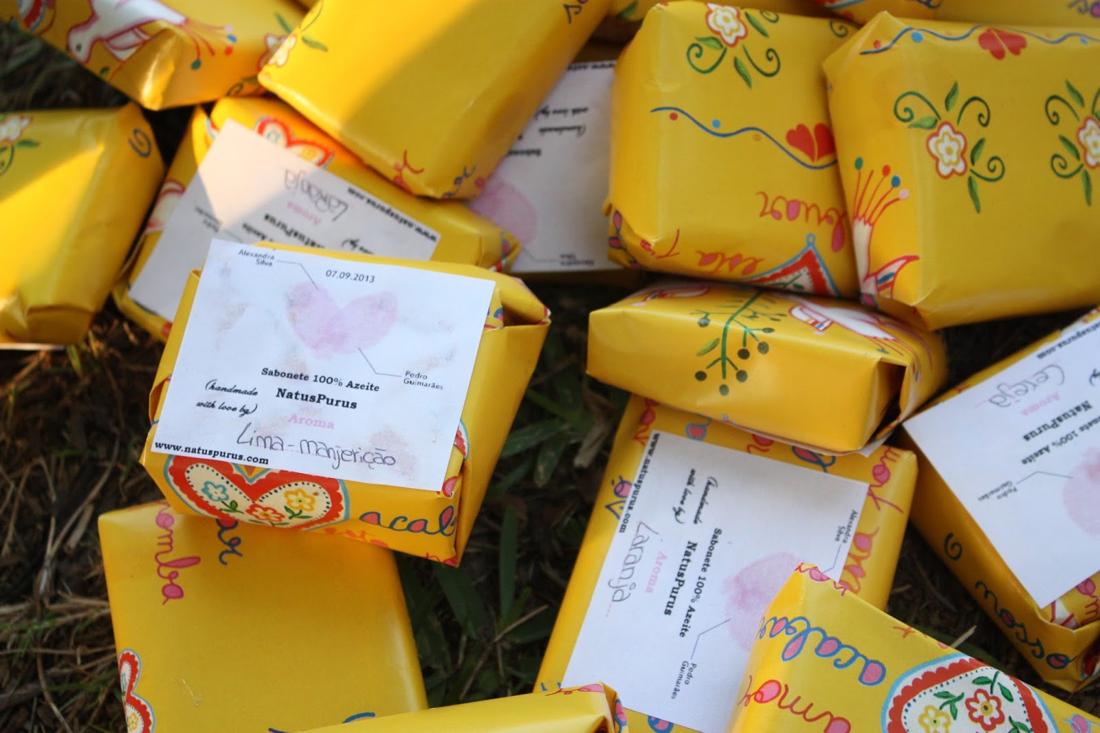As lembranças – sabonetes – foram feitas por mim e pela minha tia através da NatusPurus. 🙂